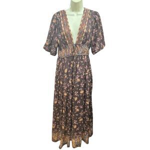 Free People Lysette Maxi Dress in Brown Print NWOT Size Small