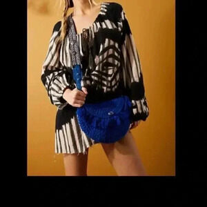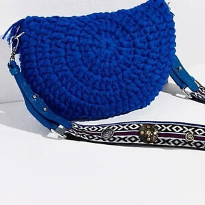 Free People-Macrame Moon Crossbody Purse Bag-Blue-New