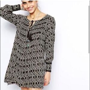 Free People Marlow Dress in Monochrome Print size S Mini Boho black and white