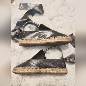 Free People Maya Wrap Espadrille Ballet Flats Metallic Gray Size 36 US 6