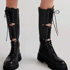 NEW Free People Miller Lace Up Boots Cutout Combat Tall Knee High EU 37.5 Size 7.5 and EU 38 Size 8