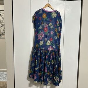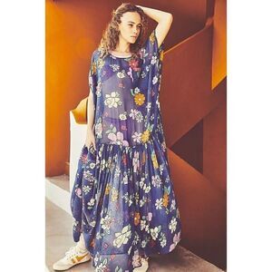 This gorgeous Free People Mina Maxi Dress is perfect for any occasion. The dress features a beautiful floral print on a blue background, with a scoop neckline and short sleeves. Made of 100% Viscose chiffon, the dress has a flowy, comfortable fit and is perfect for warm weather.