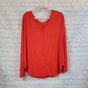 Free People Moonshine Tunic V Neck Oversized Love Glare XS 0/2 Red Orange Top