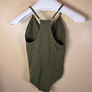 Free People Movement Move Along Olive Green Ribbed Cutout Bodysuit Size M/L