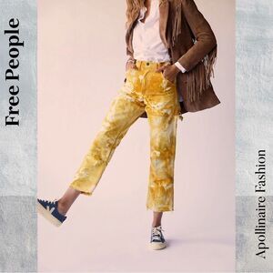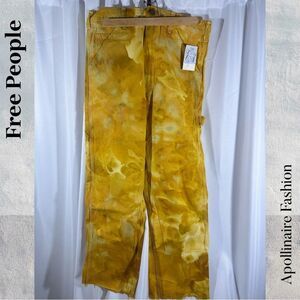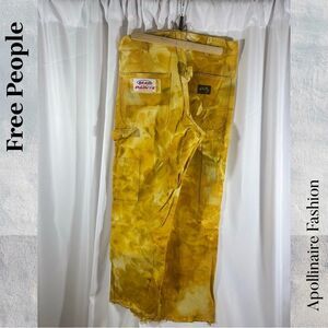 Free People Mustard Hand Tie-Dye Painters Jeans Large NWT