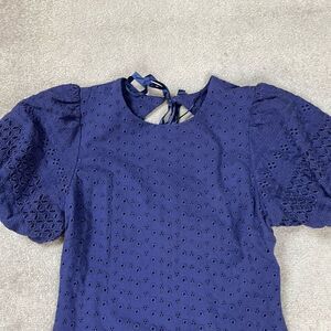 Free People New Apricot Rose Puff Sleeve Eyelet Dress In Navy Size Large