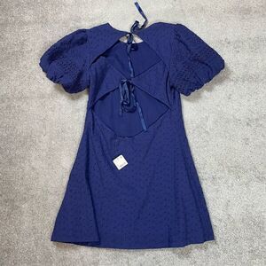 Free People New Apricot Rose Puff Sleeve Eyelet Dress In Navy Size Large NWT
