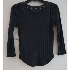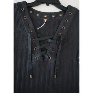 Free People OB1090510 Women's Sz S Washed Black Ice Cold Lace-Up Ribbed Top