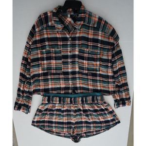 Free People OB1425432 Women Sz XL Pine Combo Wrapped In Flannel Pajama's Set