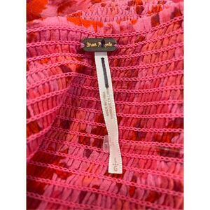 Features: Ruching throughout bodice, sheer off-shoulder puff sleeves, smocking at back for shape, floral embroidery at chest, rounded bottom hem