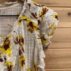Free People One Size Small Naya Printed Floral Ruffle Sleeve Tie Bottom Hem