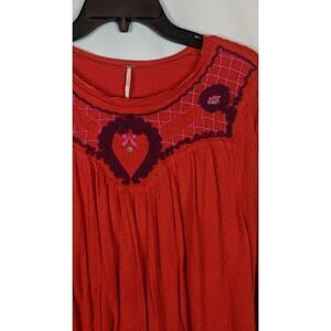 Free People Orange Blouse With Pink Embroidery Women's Size Small . Condition is Pre-owned. Shipped with USPS