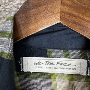 Free People Pacific Dawn Shirt Women's Size XS Black Combo Plaid Ruched-Sleeve