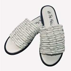 Slip on style, cushioned foot bed, round toe,We The Free on interior, woven strap and block heel, heritage inspired