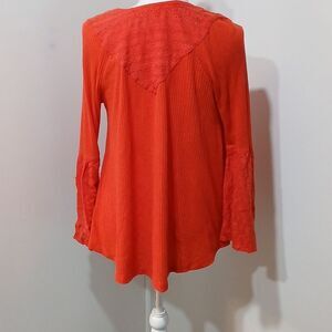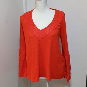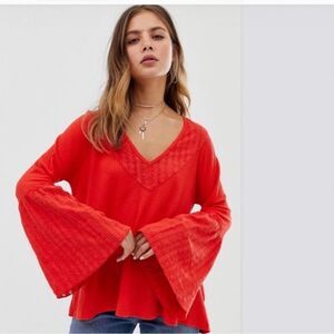 This vibrant red blouse from Free People features dramatic bell sleeves and a relaxed, pleated design. The lightweight fabric and flowing silhouette add a touch of bohemian charm, making it a standout piece for any occasion.