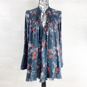 Free People Pebble Crepe So Fine Smocked Floral Tunic Top