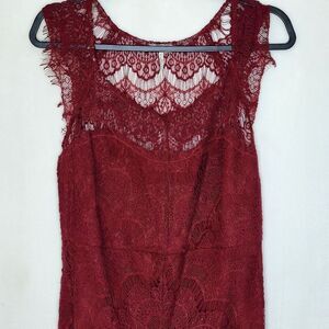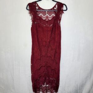 Free People Peek A Boo Cranberry Lace Slip Dress Size Medium