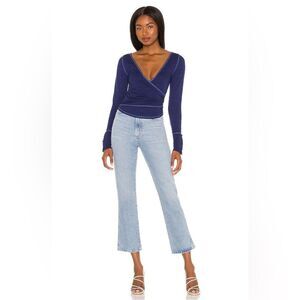 A seriously low-slung neckline adds intoxicating allure to a fitted top in a soft, stretchy cotton knit.
