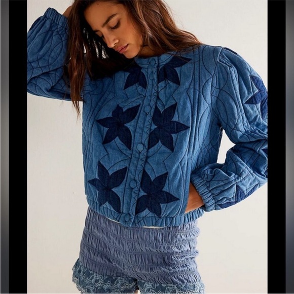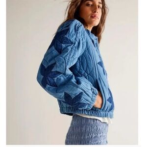 Free People Quinn Quilted Jacket Indigo Combo Size Small NWT