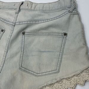 Free People Railroad Striped Denim Jean Shorts With Crochet Hem Size 27