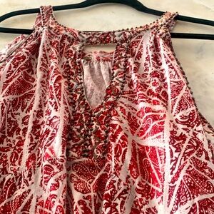 Free People Rayon Good Morning Beaded Cold Shoulder Red Sexy Top SS