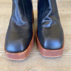Free People Ruby Platform Boot Black Leather Wood Heel NWOB