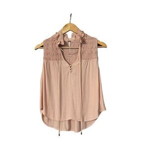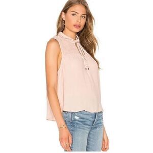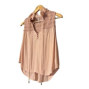 Free People Ruffle Me Up Tank Size XS Blush Pink Smocked Tie Neck