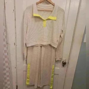 New without tags Free People Snow Day Thermal set size small. This set is cream and lime green, as reflected in the stock photos! The lighting in my home makes it look a bit yellow. Super comfy and luxurious set! Feel free to message me with any other questions 🙂