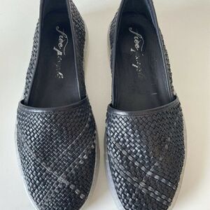 Free People Santorini Slip On Leather Flat Black