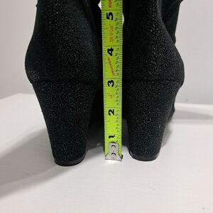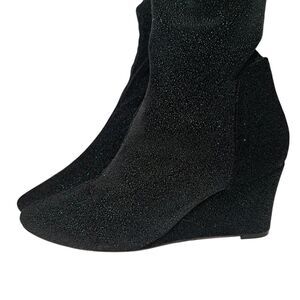 ▪︎Sparkly and shine in this stretch boots featuring a wedge heel and rounded toe. Meant to be worn slouchy.