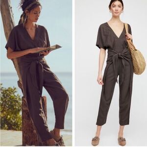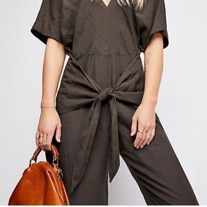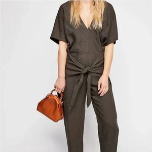 Free People Sherbet Linen Blend Front Tie Jumpsuit Romper Size M