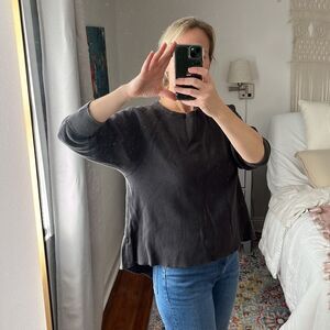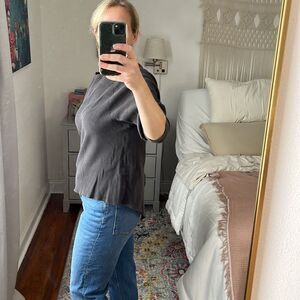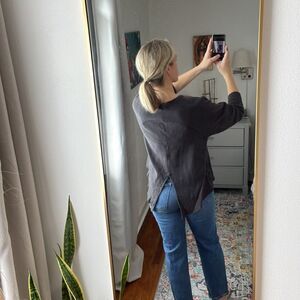 Free People Split Back Thermal Shirt Dark Grey Size Medium