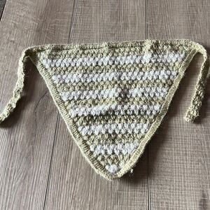 Features: Crochet fabrication, striped pattern, self-tie closure