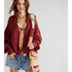 Free People Sweater Fall Friend Oversized Fuzzy Textured Boho Fall Winter Maroon