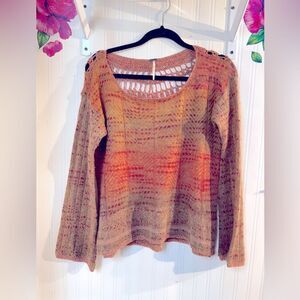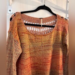 Free People Sweater Multicolor Mohair Blend Crochet Back Bell Sleeve Sz S
