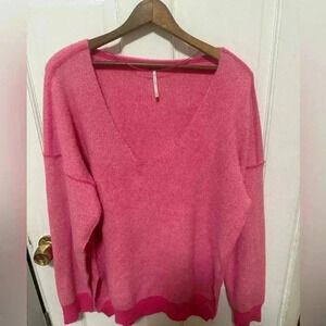 🩷Free People Sweater Weather V Neck in Hot Pink Combo Size S🩷