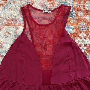 - flowy - mesh detail - a little unstitched on top (pictured) - dark red