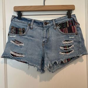 Free People Tribal Print Cut Off Distressed Denim Jeans