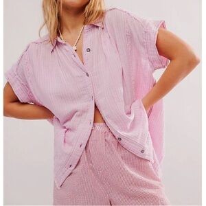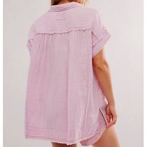 So billowy from the We the Free Collection, this laidback shirt is featured in a cotton linen blend and oversized fit with a collared neckline and slouchy sleeves.