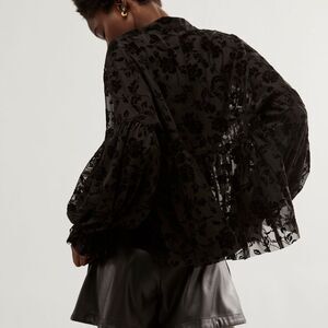 Add effortless edge to absolutely any look with this so cool bed jacket featured in a forever femme, sheer lace fabrication and babydoll-inspired silhouette with tie-front closure and exaggerated sleeves for added shape.