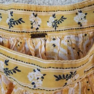 Free People~Woman S~Ochre Yellow Boho Tunic Smocked Henley CropTop Cotton.