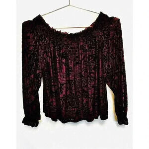Free People Women’s Size Small Burnout Velvet Top Purple Off the Shoulder Blouse