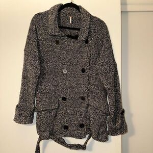 Free People Womens Wool Blend Knit Belted Peacoat Small FLAWED