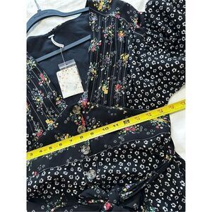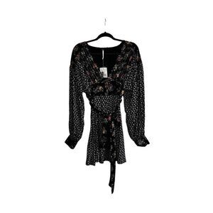 Free People Wonderland Mini Dress Black Floral Dot Size S