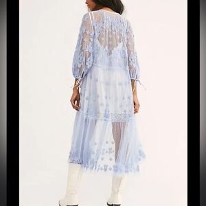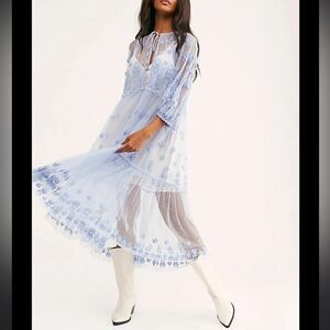 Ethereal and floaty, this mesh maxi top is featured in a sheer design with floral embroidery and a tiered skirt.
