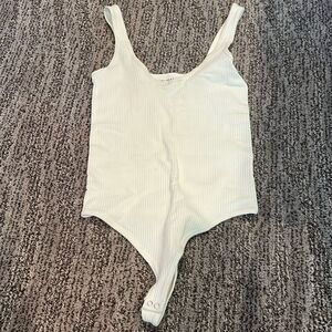 So essential and so comfy, this go-to bodysuit is featured in a ribbed fabrication with an ultra-flattering scoop neckline and thick tank straps for the perfect layering piece.