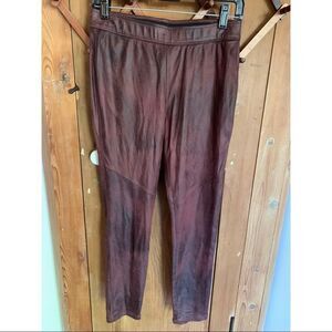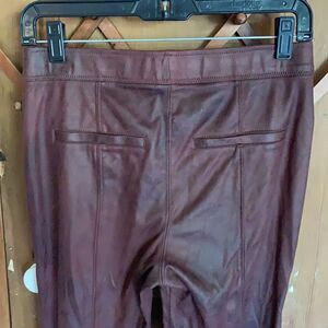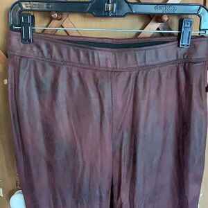 Free People distressed wine faux leather legging pants with elastic waistband and stretch material. Has faux pockets in back. Excellent Condition Never worn