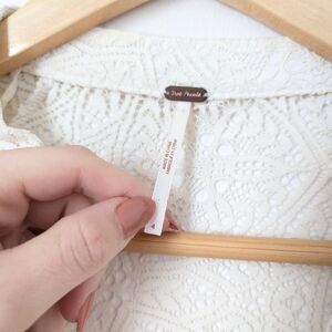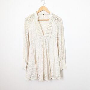 Free People ivory Uptown Lace plunge v-neck pleated long sleeve mini dress