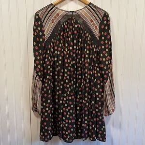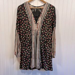 Free People rain or shine deep v-neck with lace up closure long sleeve boho peasant tunic