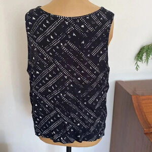 Free People tank blouse cut out detail sz M viscose rayon blend black w/ white